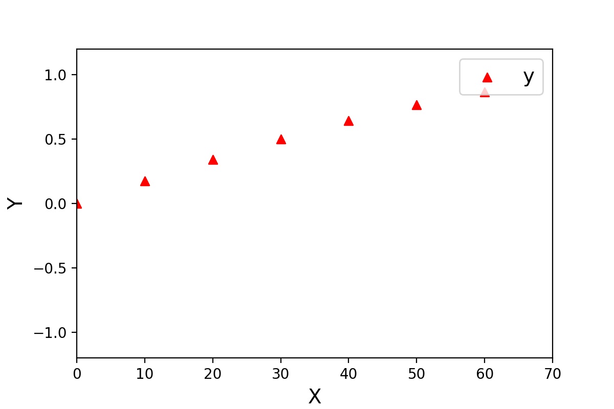 plt.scatter(x, y, color='red', label='y',marker='^')