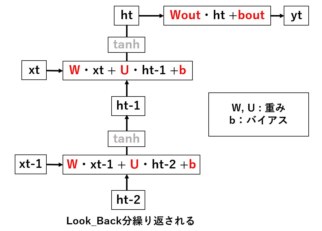 RNNの内部計算をnumpyで再現するうえで、まずはRNNの構造および内部パラメータがどこで使われているのかを理解しておきましょう。